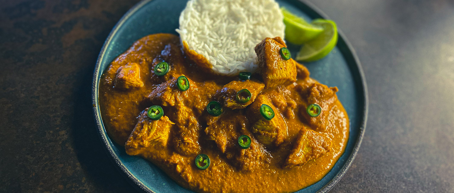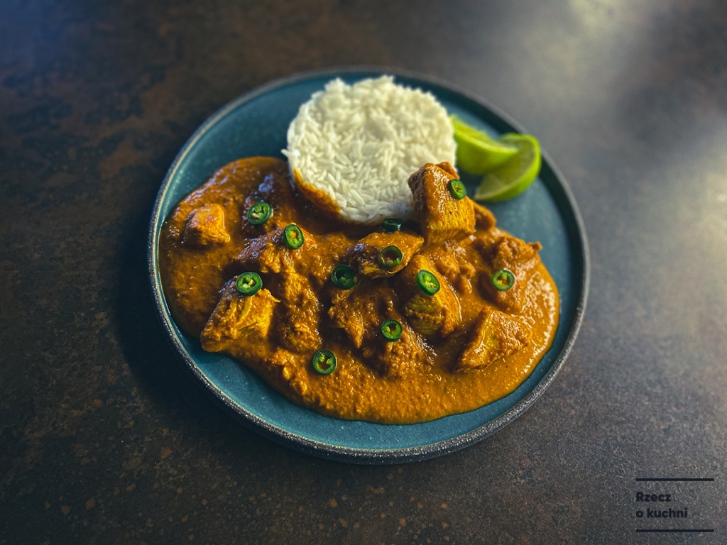 Przepis na pysznego, soczystego, uzależniającego kurczaka, marynowanego w jogurcie z dodatkiem aromatycznych przypraw, zanurzonego w wyrazistym, kremowym, pomidorowym sosie i podawanego z delikatnym jaśminowym ryżem.